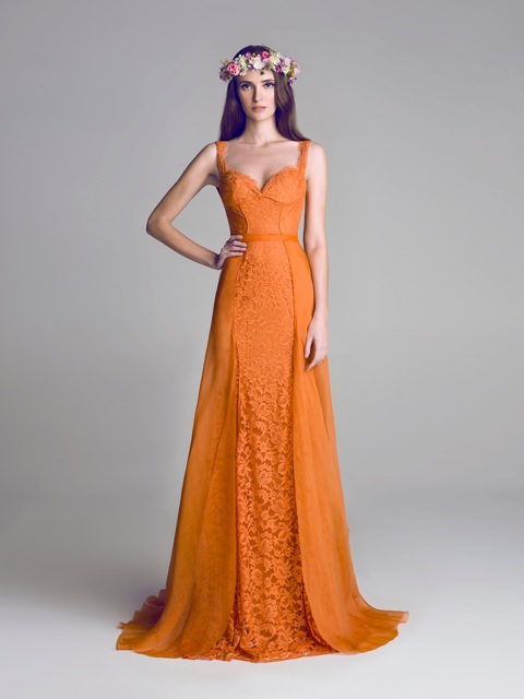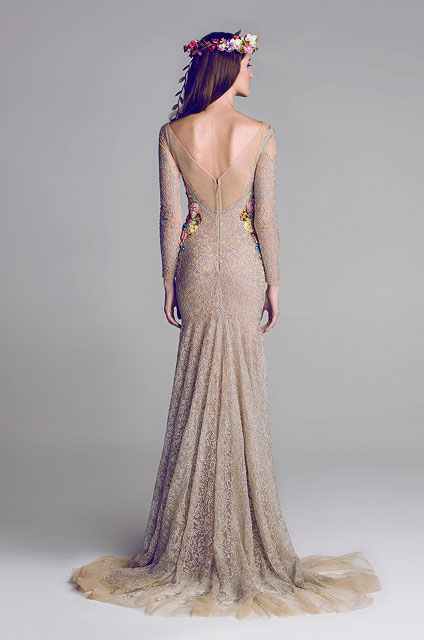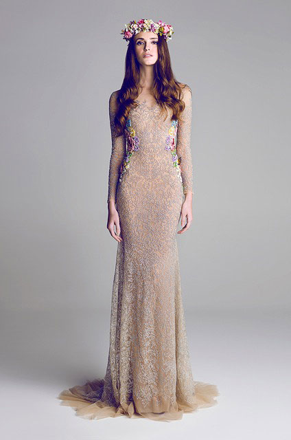 Not that confident to step out your comfort zone yet? Try going for colored patterns instead from Sophia Tolli’s 2014 Bridal Collection.