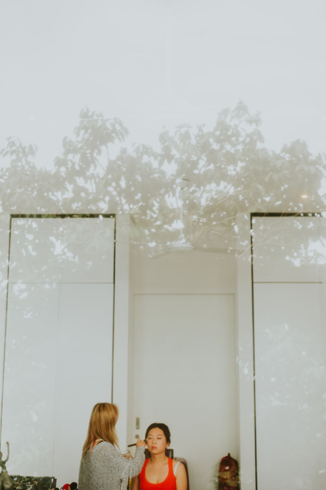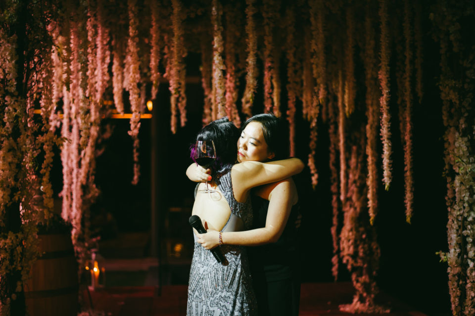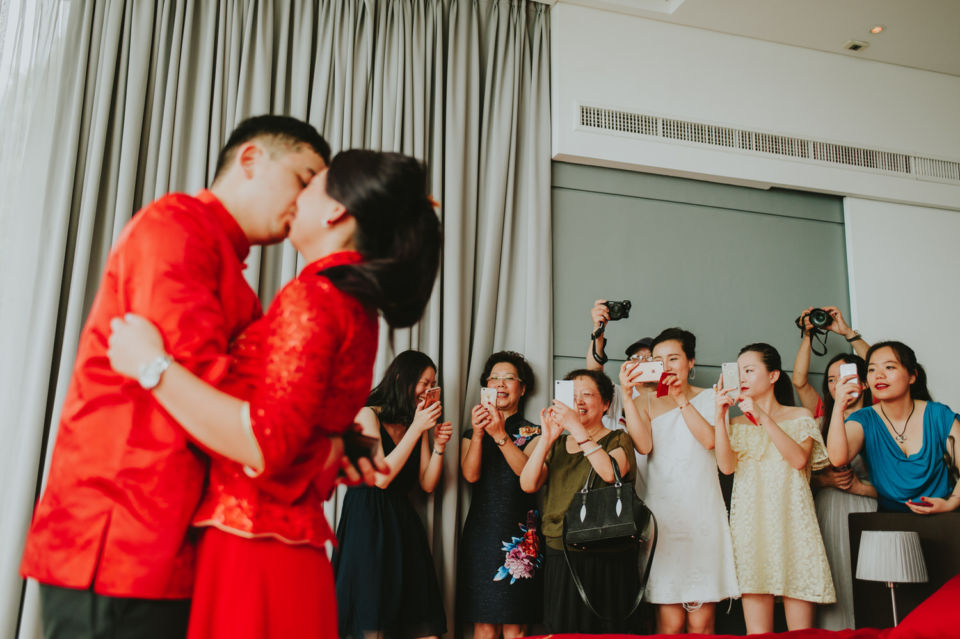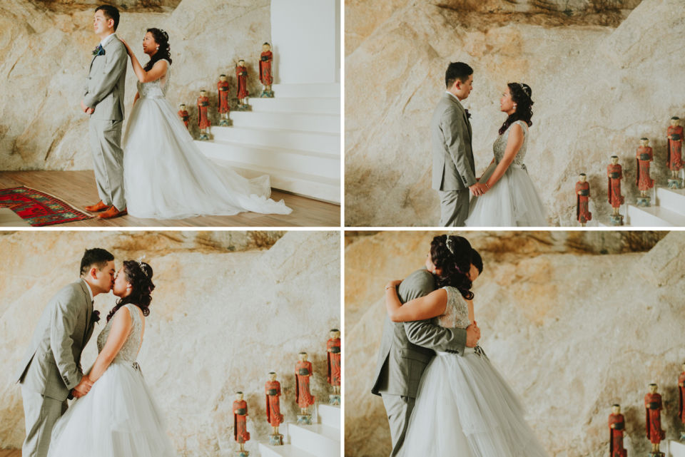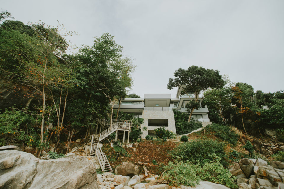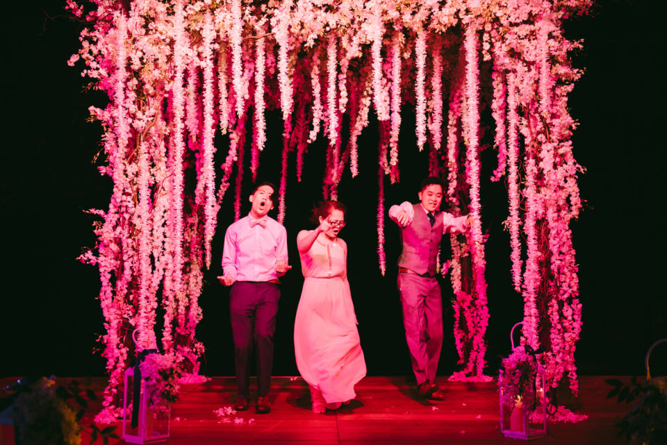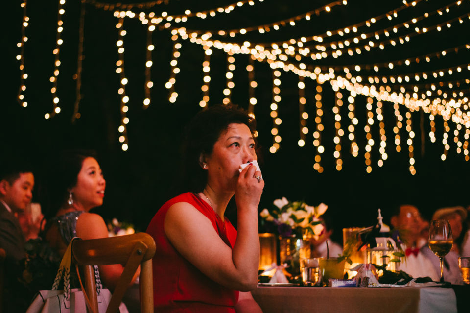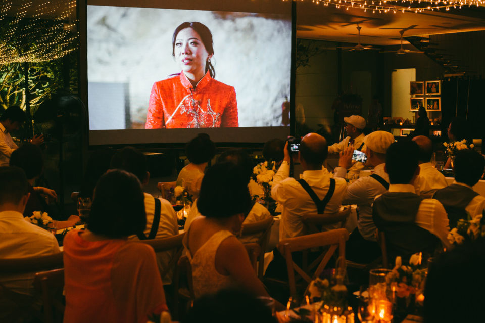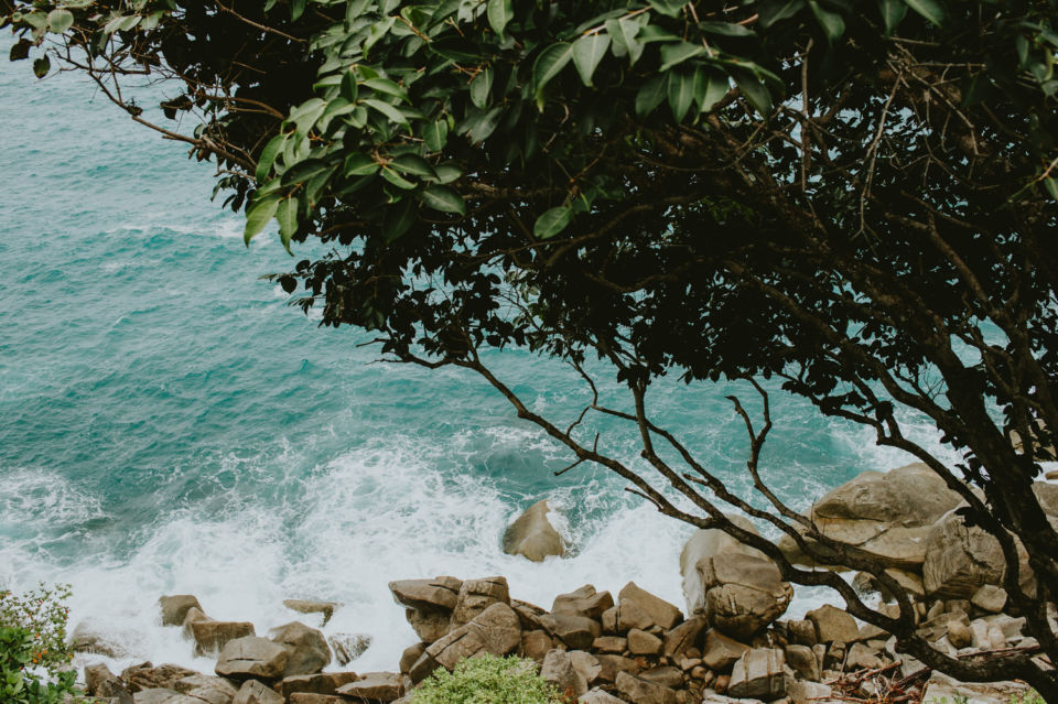 The wedding of Alex and Andy is a great example of simplicity at its best. The newlyweds met at Vanderbilt Law School, and the campus happens to be an Arboretum with thousands of trees. There weren’t thousands of tree at the wedding venue, however, the breathtaking view definitely makes up for it. The wedding ceremony was just magical, it was held on a beautiful island in Phuket, with a wooden stage built over a swimming pool for this intimate destination wedding. The stage structure was made of tree branches covered in hundreds of white orchid chains. The look was completed with white storm lanterns covered in orchids.