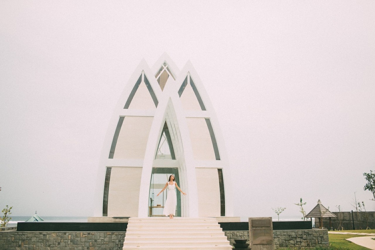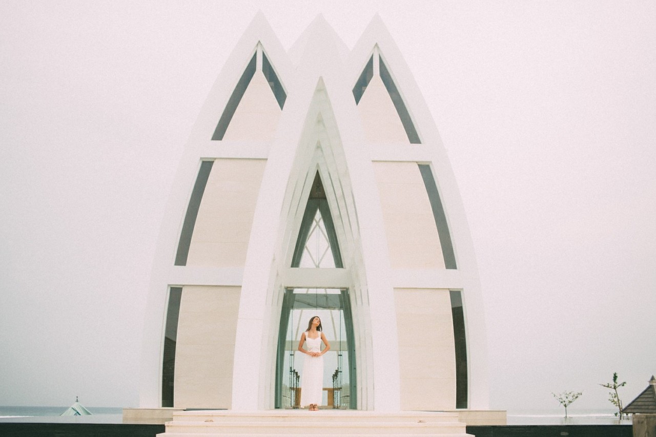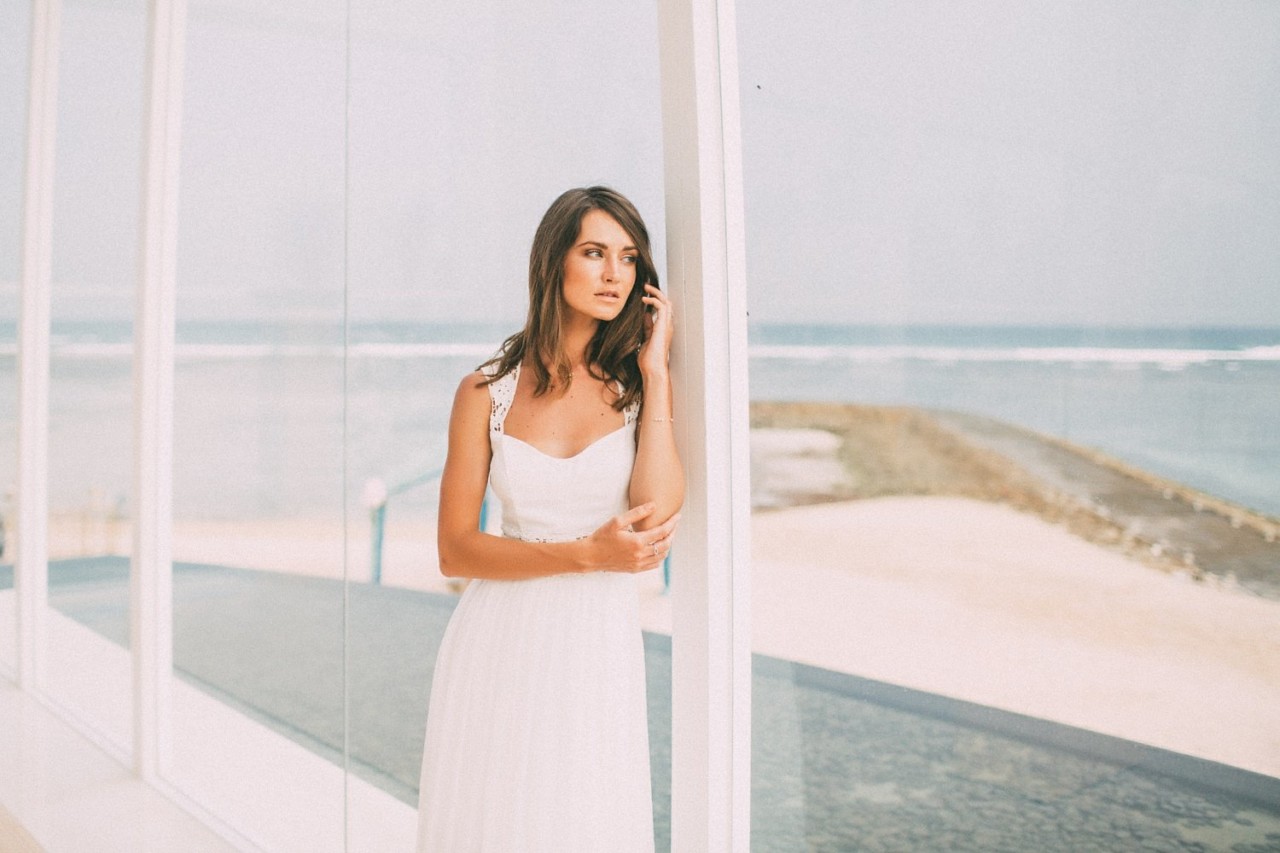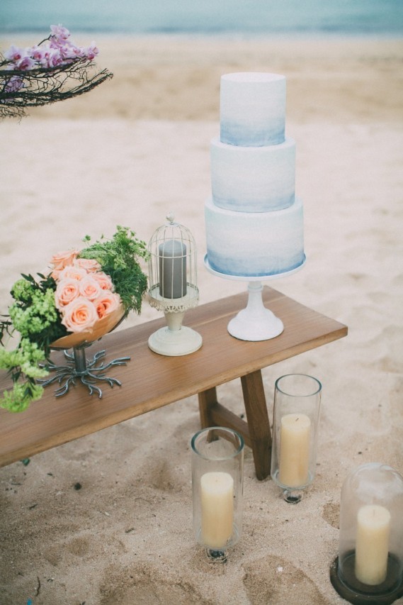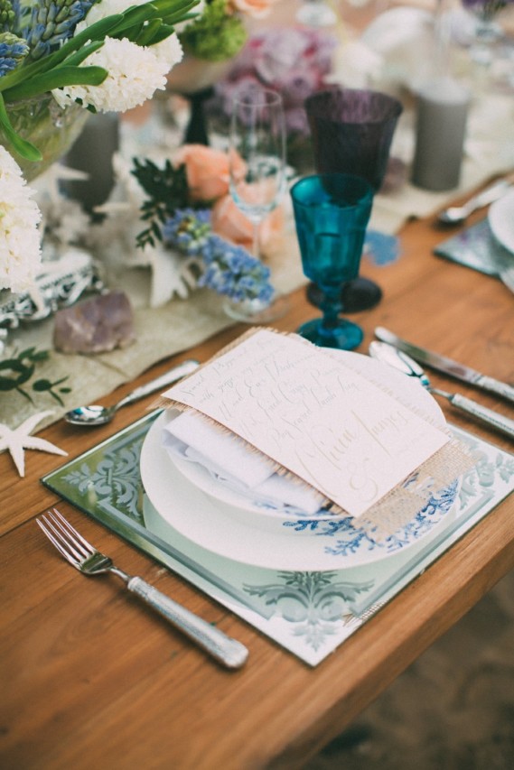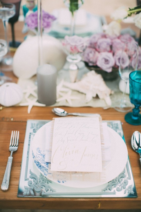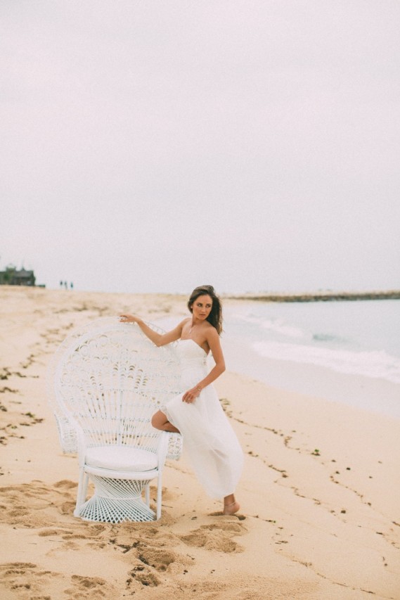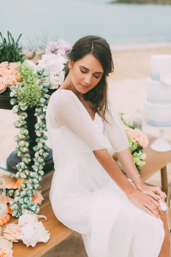 Inspired by all things romantic, this bohemian styled wedding inspiration at Ritz Carlton Bali is for the boho brides and beach babes. We have fallen in love with, the sheer tulle ivory draping like tent, a chandelier hanging in the middle set on the beach and a rustic wooden table covered with a linen runner. As for decor there are oceanic decor and textures, corals, shells, oyster shells, crystals and raw amethyst that go down the aisle, plus single blooms and a variety of candles. We just can’t get enough of the idea of an intimate beach wedding – and the ceremony structure is great inspiration for any beach wedding!