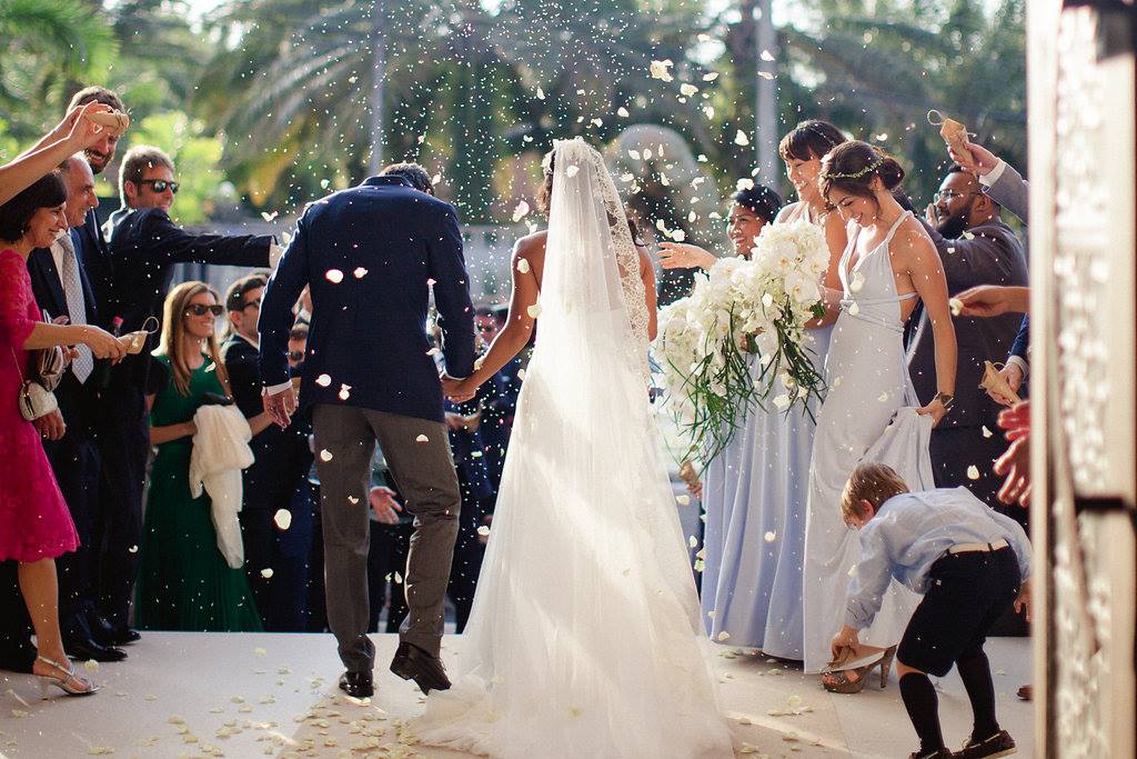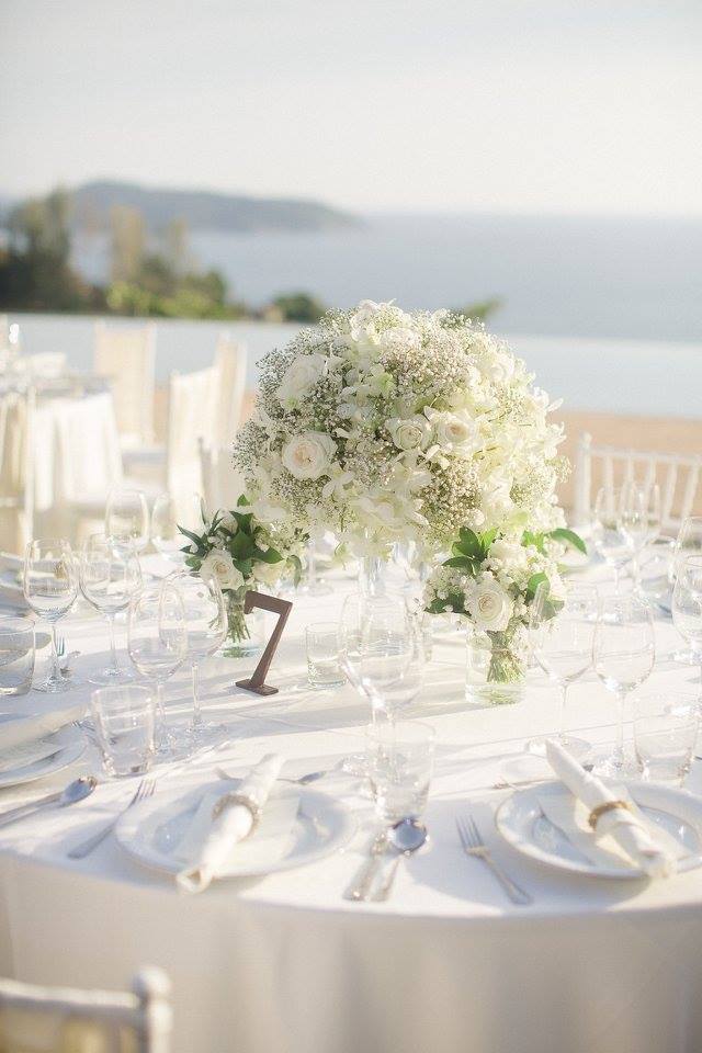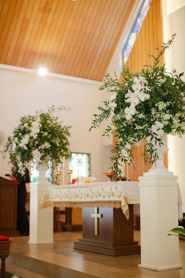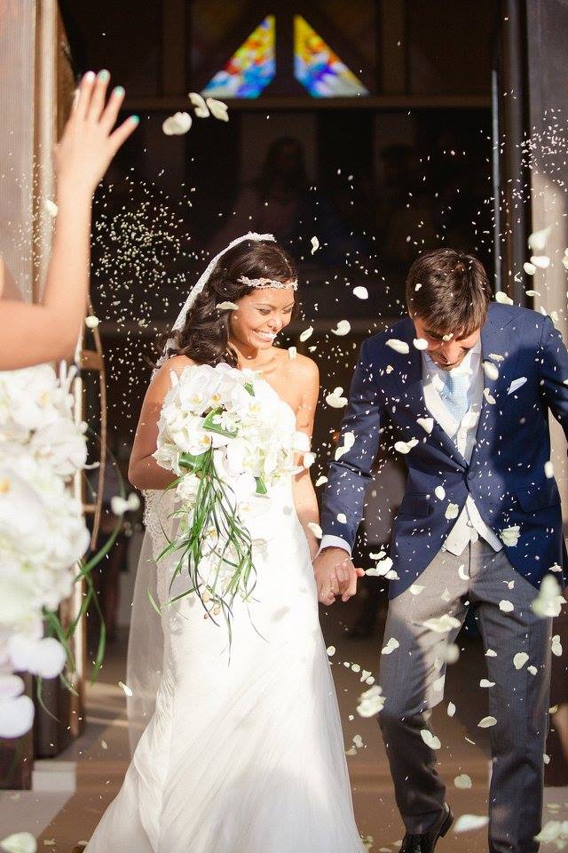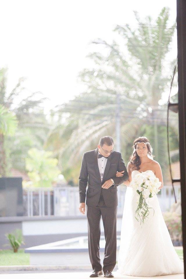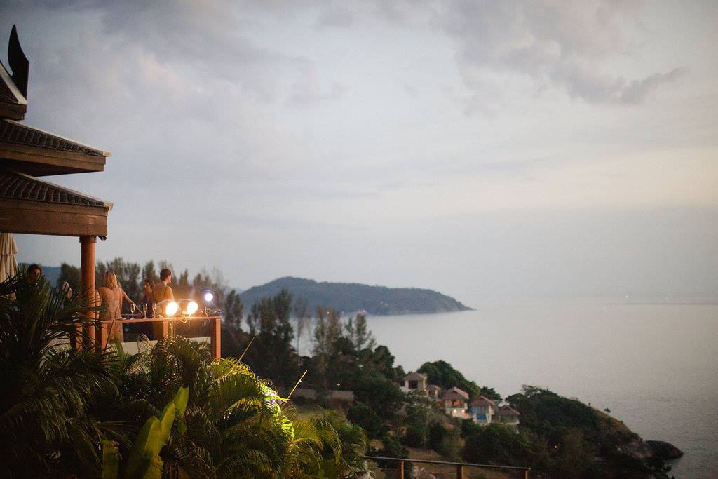 Diane and Giacomo decided on a traditional church ceremony to respect the Italian Catholic tradition of Giacomo’s home country. The simple church interior was complemented with arrangements of native to Thailand orchids, which added a “destination” element into this tradition. As the bride and the groom walked out from the church showered with rice and flower petals, they further made their way into their “Just Married” tuk-tuk — a traditional Thai carriage typically used as a local taxi. With this cute and authentic transport, they set off for a portrait shoot in a rubber plantation nearby. Continuing the celebration of Diane and Giacomo’s union, the couple headed to a private villa with stunning Andaman sea view for their wedding reception.