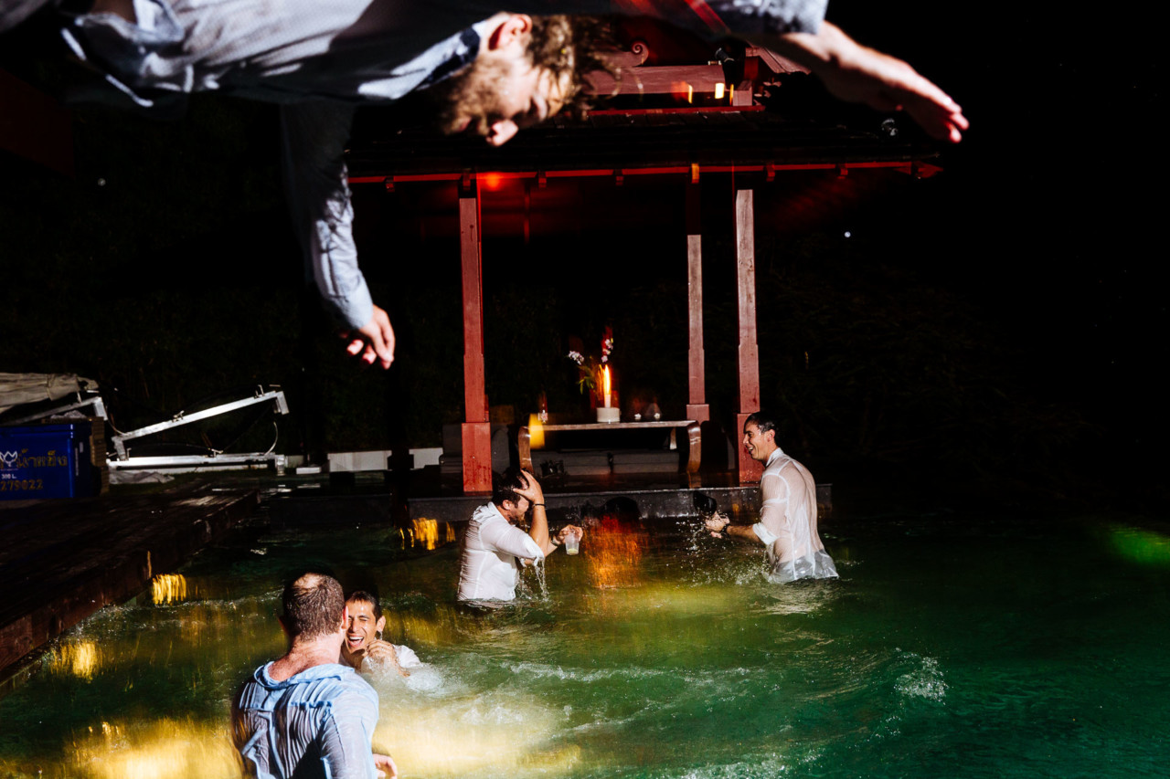 We are a pretty intrepid pair and it only felt right that we should bring our loved ones together in beautiful Thailand where we have spent so much time in previously. We wanted something that felt like an exotic summer garden party and the idea of getting married on a cliff top overlooking the sea was inspired by where Steven proposed in Bali.