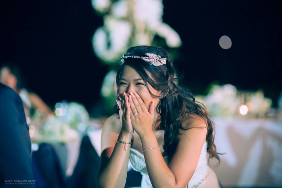 Paulina and Matt, tied the knot at a stunning lawn of a small boutique luxury villa collection where they close down the entire property for their families. Paulina wanted a natural, fresh and fun feeling for her dream wedding for which the team at The Bridal Planner Phuket created a white with a little bit of greenery color theme matching with their DIY natural color wood work props. Little detail like lace from Matt’s mother’s wedding dress where incorporated and displayed among their families wedding photos.